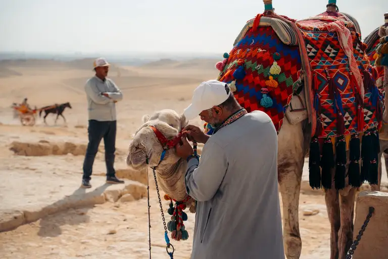 Jsou to hlučné turistické atrakce, kde se pozornost často mění v obchod – nabídky jízd na koních, velbloudech a neustálé pokusy, jak z návštěvníka dostat peníze.