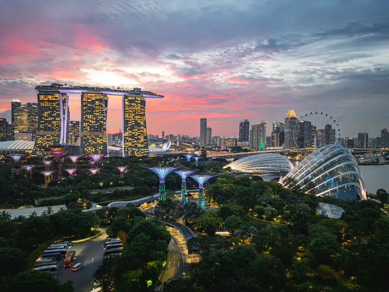 Singapur. Tohle je zatím (pro mě) jedna z mých nejlepších fotografií. Je focená z dronu, v jednom z nejbohatších států světa. Platí tu poměrně přísná pravidla – lidé nesmí krmit holuby, zahazovat žvýkačky, za všechno jsou pokuty.